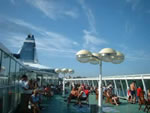 どこかの駅でしばらく停車して、、なかなか動かないなーと思ったら、フェリーにのせて海を渡っていたのでした。